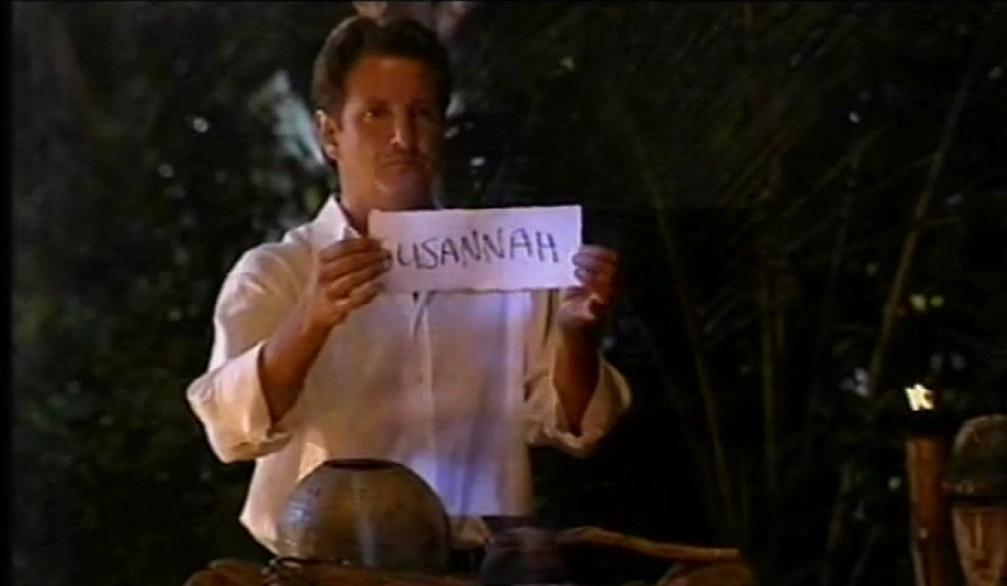 Presenter Mark Nicholas holds up a voting result on reality show ‘Survivor’.