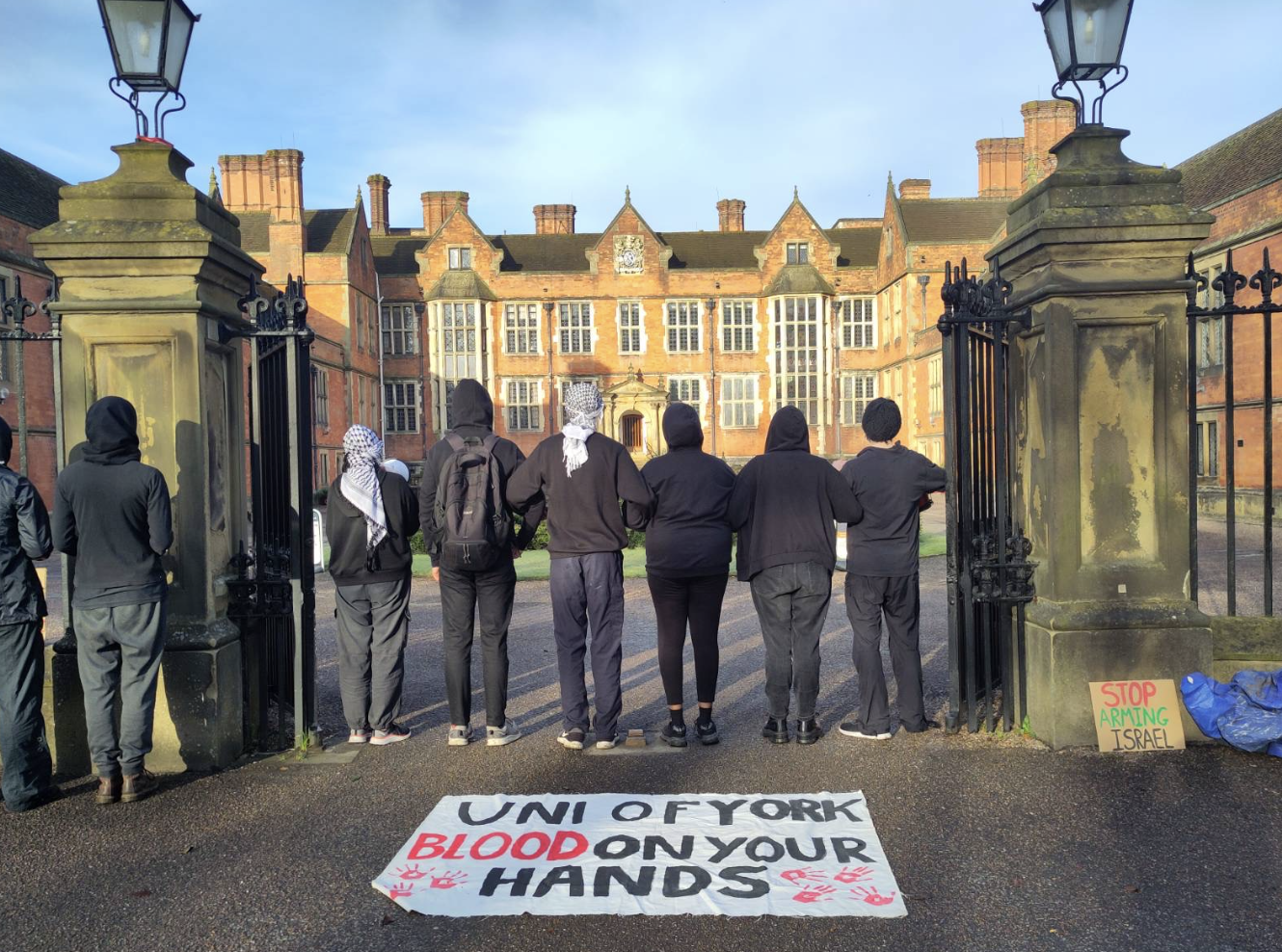 On Tuesday 22nd of April, a group of students and staff arranged a blockade at the front gates of Heslington Hall, the offices of the University Executive Board, in protest against the University’s “continued complicity” in the genocide in Palestine.