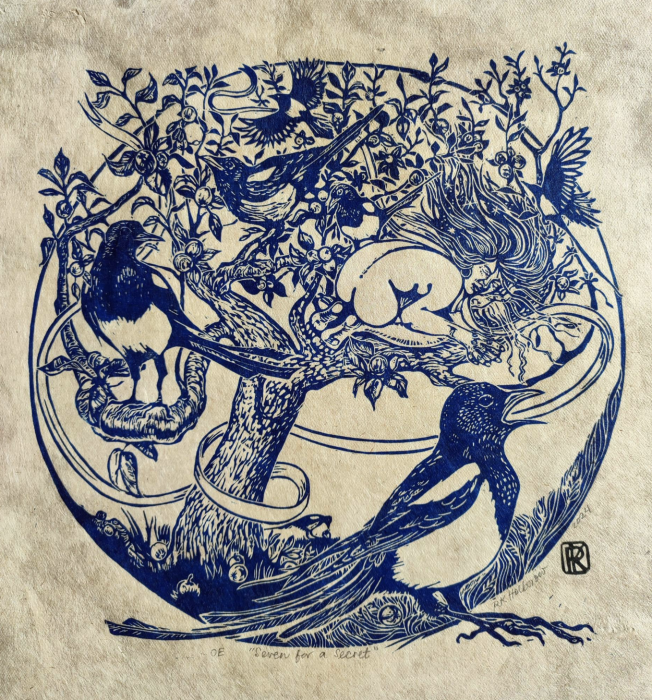 “This references Seven for a Secret, which is from the little rhyme about magpies and there’s seven different magpies. But it mainly considers the secrecy of patriarchy and how we can’t speak about various things.”