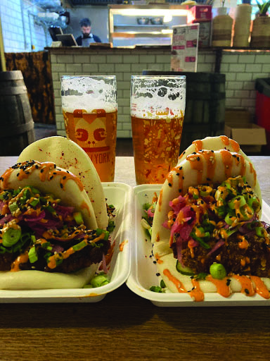 To round off our visit, it was time to sample their internal food vendor, Yuzu Street Food. We settled down with a pint of ‘Big Eagle’ and marveled at the menu in front of us. We both went for bao buns in the end. It was braised beef and fried chicken for me, and fried tofu for my partner in crime, both were stunning and just what we needed to bring the world back into focus after an afternoon of beer tasting.