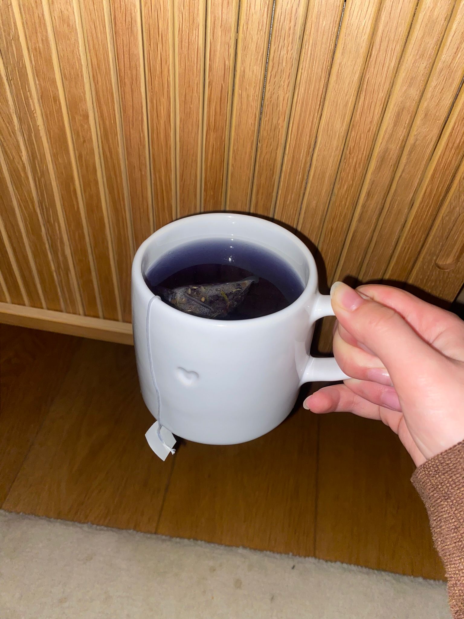 This ‘peaceful night-time tea’ is made up of 3 ingredients: butterfly pea flowers, Indian ginseng and lavender. This was by far my favourite tea for one reason. When I poured the hot water over the tea bag, it turned the most amazing, dark indigo colour. I’ve never seen anything like it! The flavours of this tea, especially the lavender, are subtle and soothing, perfect for before bedtime.