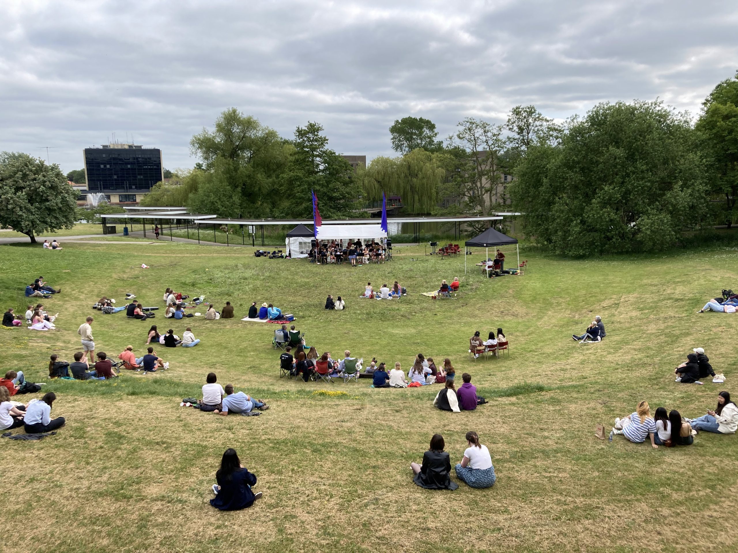 The Inaugural Jazzfest, a communal music event held in Vanbrugh Bowl on Tuesday the 6th of June, combined the forces of the University of York’s Jazz Orchestra, Clarinet Choir, Big Band 106, Saxophone Quintet and Jazz and Big Band. Audience members showed up armed with picnic blankets and camping chairs to spend an afternoon relaxing in the sun and enjoying the chilled atmosphere.