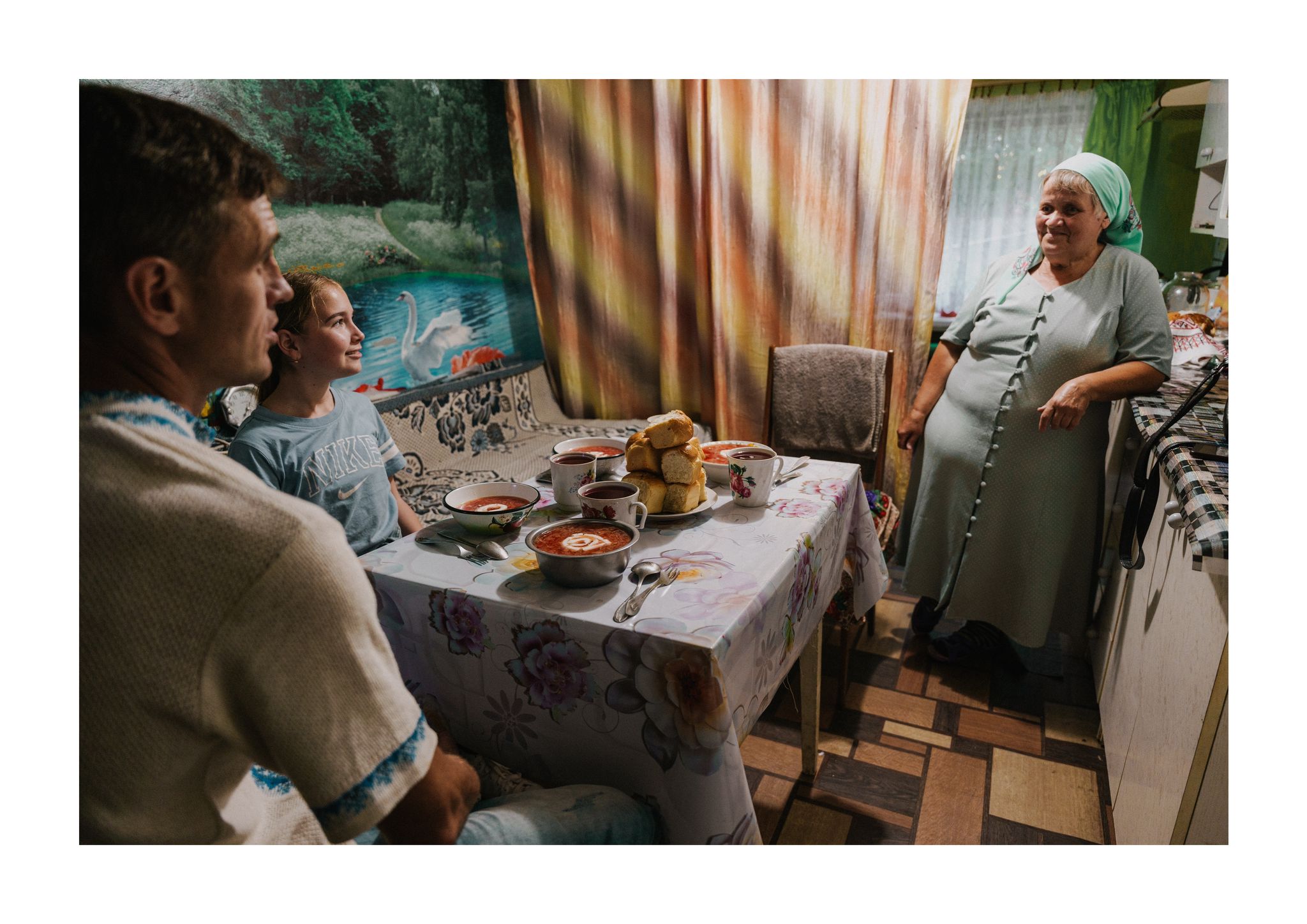 Ed’s photography delves into various layers of facing the devastation of invasion and war. From capturing the raw brutality of war, exploring ‘Textures of War,’ to introducing Ukrainian culture, such as a family reuniting over Borsch.
