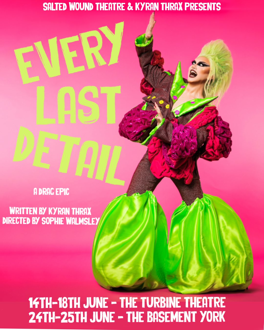 Presented by Salted Wound Theatre and directed by Sophie Walmsley, Every Last Detail explores the life of a young drag queen discovering her identity.
