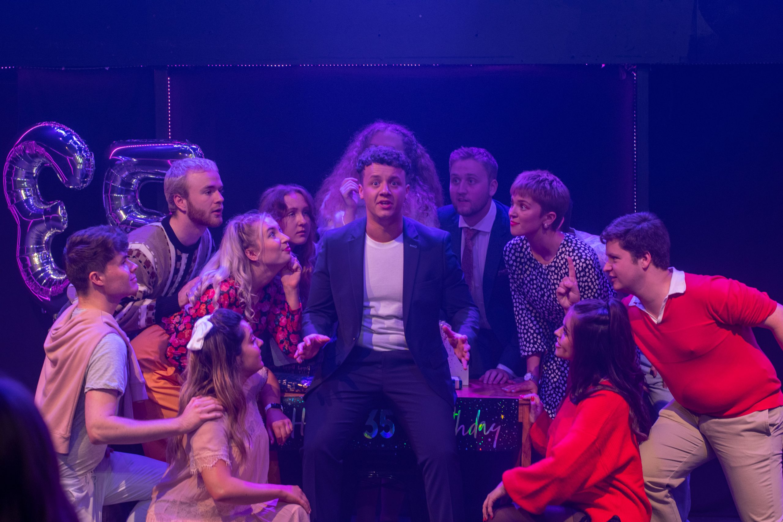 Director Anna Gallon thoughtfully brought Company into the modern world, opening the show with Bobby taking a selfie with the whole audience; a great way to make it feel as though you are one of Bobby’s friends at his birthday party. Theatre@41 is an intimate theatre, but this worked perfectly for the immersive feel of the show. The space is used thoughtfully and cleverly, with a simple set and shining lighting transporting the audience across New York – from Bobby’s apartment, to an open-air terrace and on to a club. The transition between each scene was practically seamless, keeping you grounded in the world of ‘Company’.