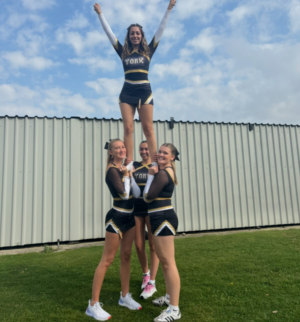 Speaking to Hollie Manly and Holly Foster, who have been part of University of York’s Hornets for three years and served as co-captains for one of the competitive teams last year, I was given a clear insight into how physically and mentally intensive the sport can be. “Our athletes train SO hard, first thing in the morning and last thing at night”, they said. “The sport demands so much physical strength and stamina. We train two or three times a week for about 4-5 hours every week. Training is with the whole team and involves stretching, conditioning, learning dance choreo, practising jumps and stunts.”