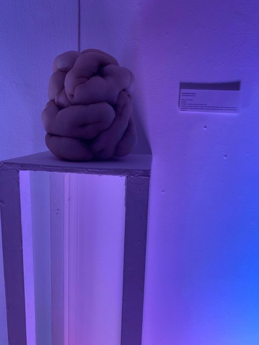 I was impressed by the breadth of work showcased, including some work that made me consider my own relationship with my body. One piece that I was struck by is “Lumps” by Saskia Bonner-Tymms. The piece is made from Styrofoam cladding, nylon, and human hair. The work is unsettling to look at, and yet I found myself returning to it for a closer look. The artist’s intention is to “re-imagine the body into new and peculiar structures”, which I think is captured well.