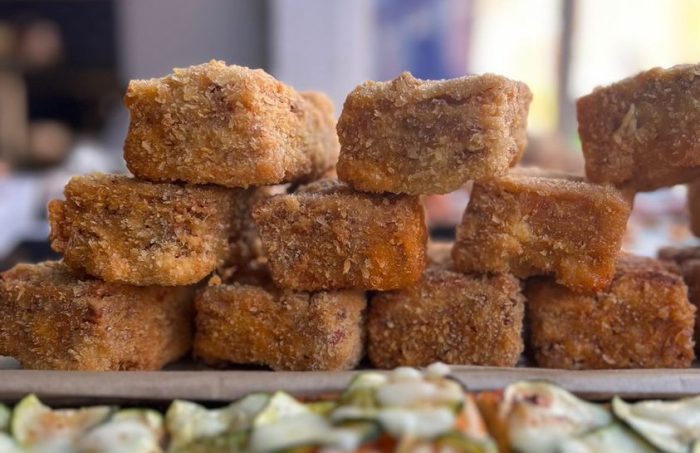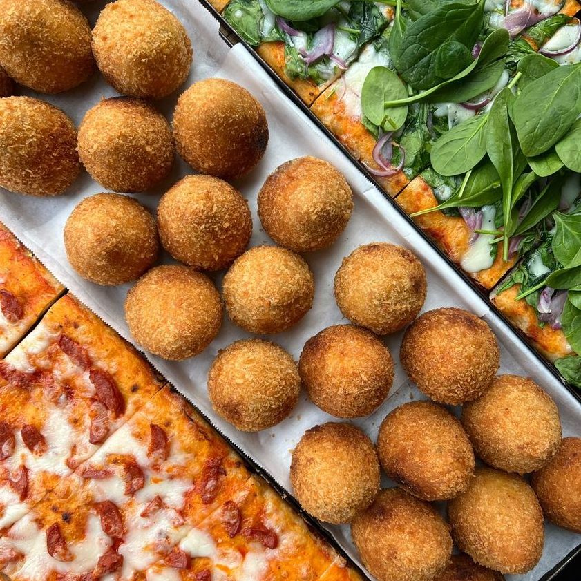 This is The Biga +, serving Pizza Al Taglio, which is made with three-day fermented dough, covered with delicious toppings that change every day.