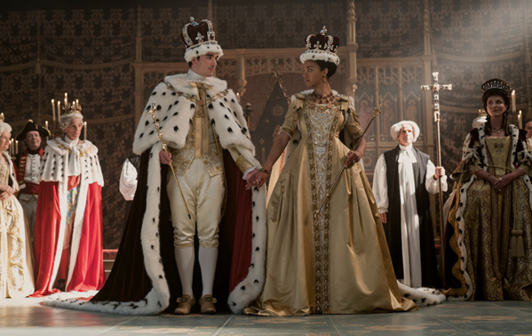 The focus of the series is Bridgerton past, and the love story between Charlotte and George. Aged just “seven-and-10”, she is shipped from Germany to England to wed the young British king, George III (Corey Mylchreest).