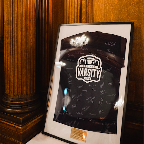 Signed Varsity 2023 shirt, in which Constantine players helped York secure back-to-back wins against Durham for the first time. (Image: YUSU)